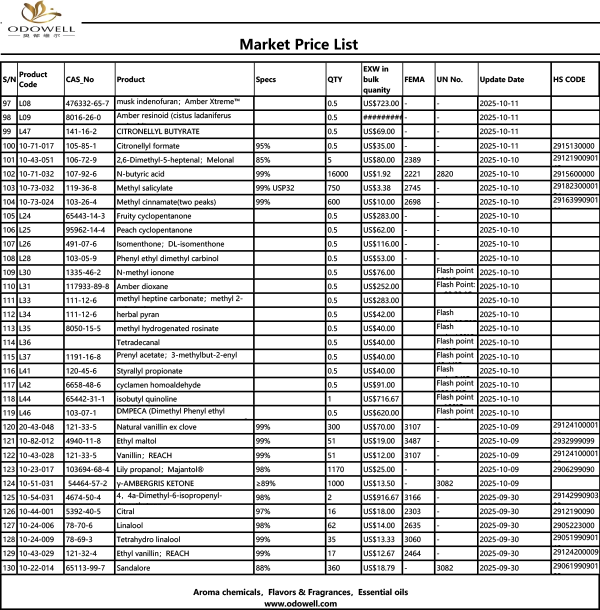 ஓடோவெல்-மார்க்கெட் விலைப் பட்டியல்-2025.9.30-2025.10.24